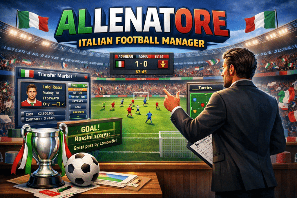 Allenatore Italian Football Manager er et simpelt, men overraskende dybdegående fodboldmanagerspil, hvor du får ansvaret for en italiensk fodboldklub fra sidelinjen. Her handler det ikke om flashy 3D-grafik, men om taktiske valg, transferstrategi og evnen til at håndtere pres fra fans, presse og bestyrelse.