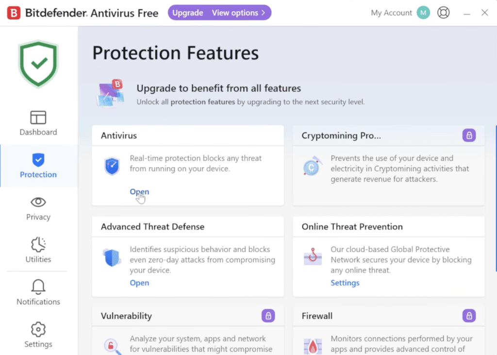 Bitdefender Free er designet til automatisk drift. Undgå at installere andre antivirusprogrammer samtidig – det kan skabe konflikter.