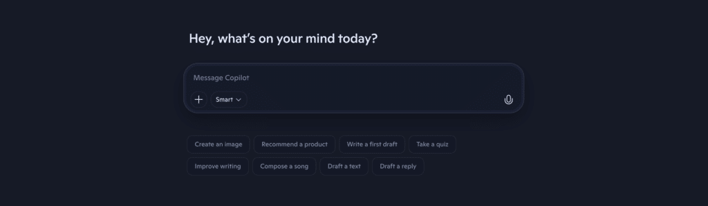 - Copilot på web (copilot.microsoft.com): Den “klassiske” chat-oplevelse, hvor du stiller spørgsmål og får svar.