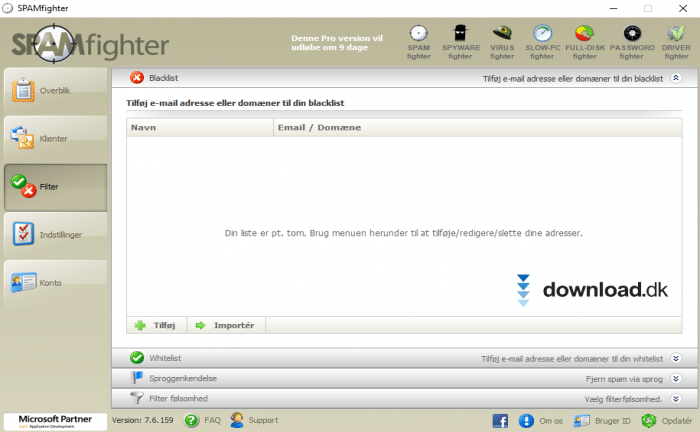 Med automatisk spamfiltrering og et brugervenligt design – fuldt oversat til dansk – er SPAMfighter en solid løsning for både privatpersoner og små virksomheder, der ønsker at beskytte sig mod spam, phishing og identitetstyveri.