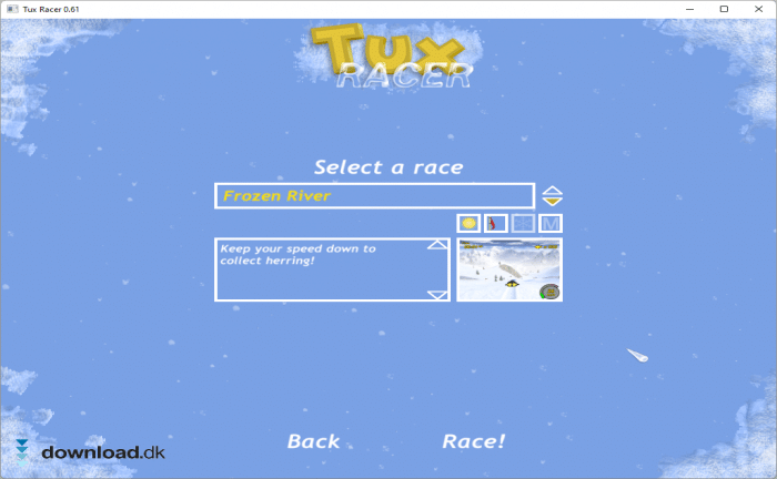 Her på Download.dk elsker vi selvfølgelig pingvinen Tux, som tilfældigvis også har rollen som den officielle maskot for Linux-kernen. Derfor kan du også finde denne karakter i mange gratis og open source spil såsom Tux Racer, som du netop kan læse mere om på denne side. Som det er nævnt nederst på siden, så kan det dog være en fordel i stedet at prøve Extreme Tux Racer, der er en nyere og bedre version.