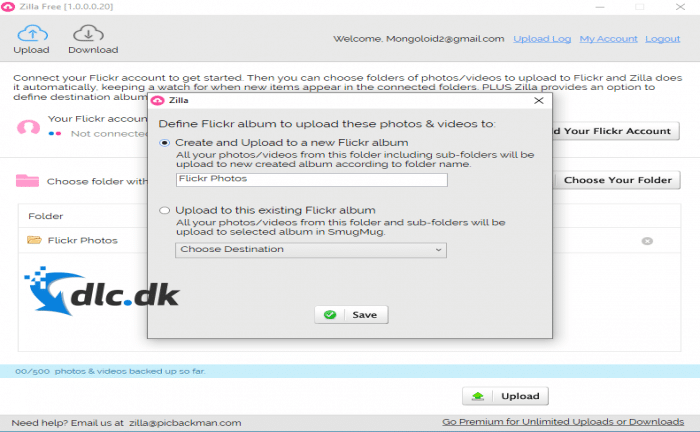 Zilla er en uploader til Flickr. Her kan du samle alle dine photos og videoer i mapper, og lade Zilla uploade det hele for dig på én gang. Du sparer dig selv tid og en masse besvær.
